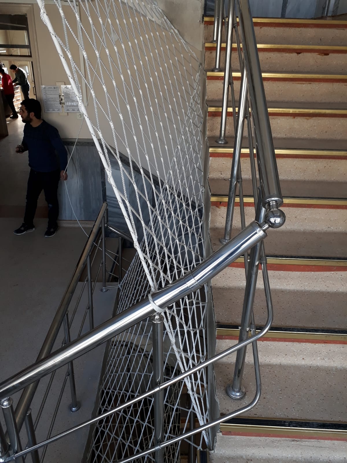 Elbette birçok farklı yönden kullanım alanına sahip merdiven boşluğu filesi uygulamasının sayılamayacak çok kullanım sahası bulunuyor. Söz gelimi okullar, hastaneler, kreşler, kamu binaları ve benzeri çok katlı binalarda son yıllarda çok daha fazla kendisine yer bulan uygulama yaralanmalar hatta ölümle sonuçlanabilecek kazalara karşı alınacak önemli tedbirlerin başında geliyor. Bunun yanı sıra firmamızdan merdiven güvenlik filesi dışında balkon emniyet filesi, İnşaat alanlarında kullanılan güvenlik fileleri, kuş filesi tarzında benzer uygulamaları da talep edebileceğinizi lütfen unutmayınız. Profesyonel uygulamamız için telefonlarınızı bekliyoruz efendim. Esen kalınız